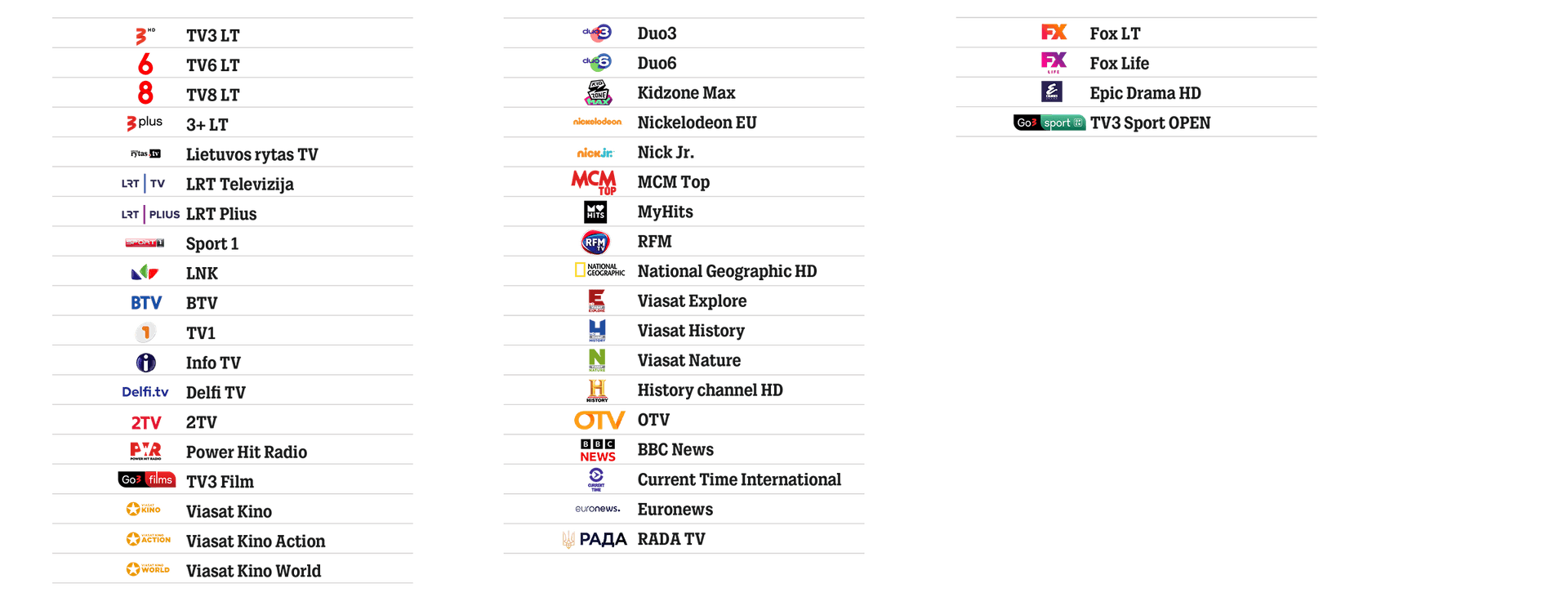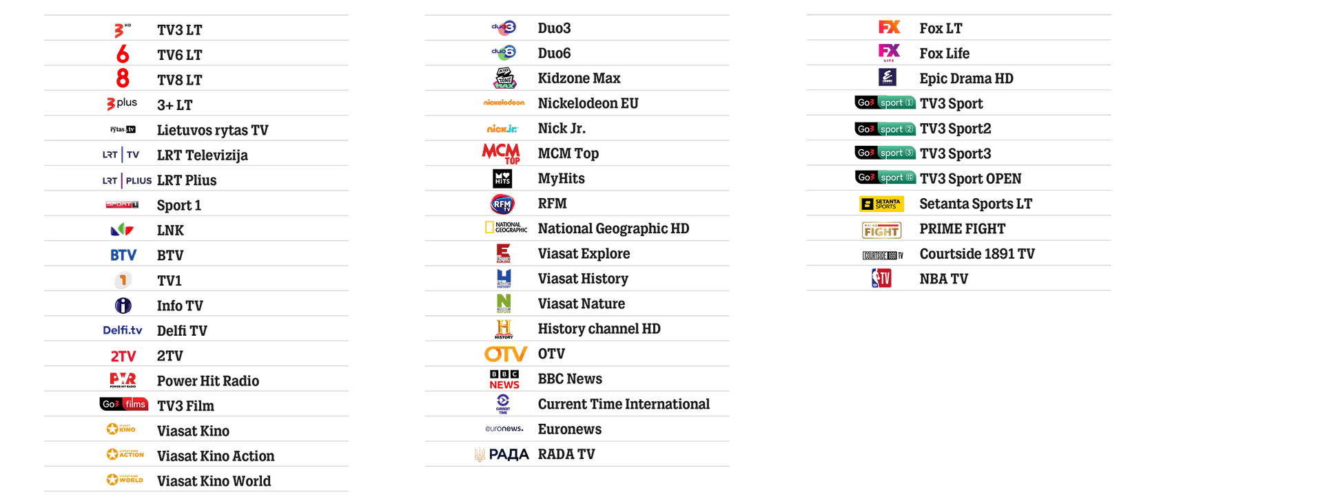 Rasite žinomus lietuvių kalba filmų bei vaikų kanalus – Balticum, Kidzone, Nicktoons ir Filmzone.