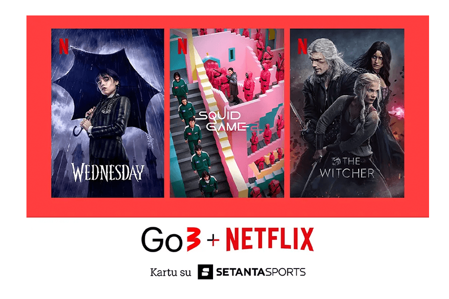 Kartu su Netflix gaunate prieigą prie Setanta Sports programėlės su mėnesine prenumerata.