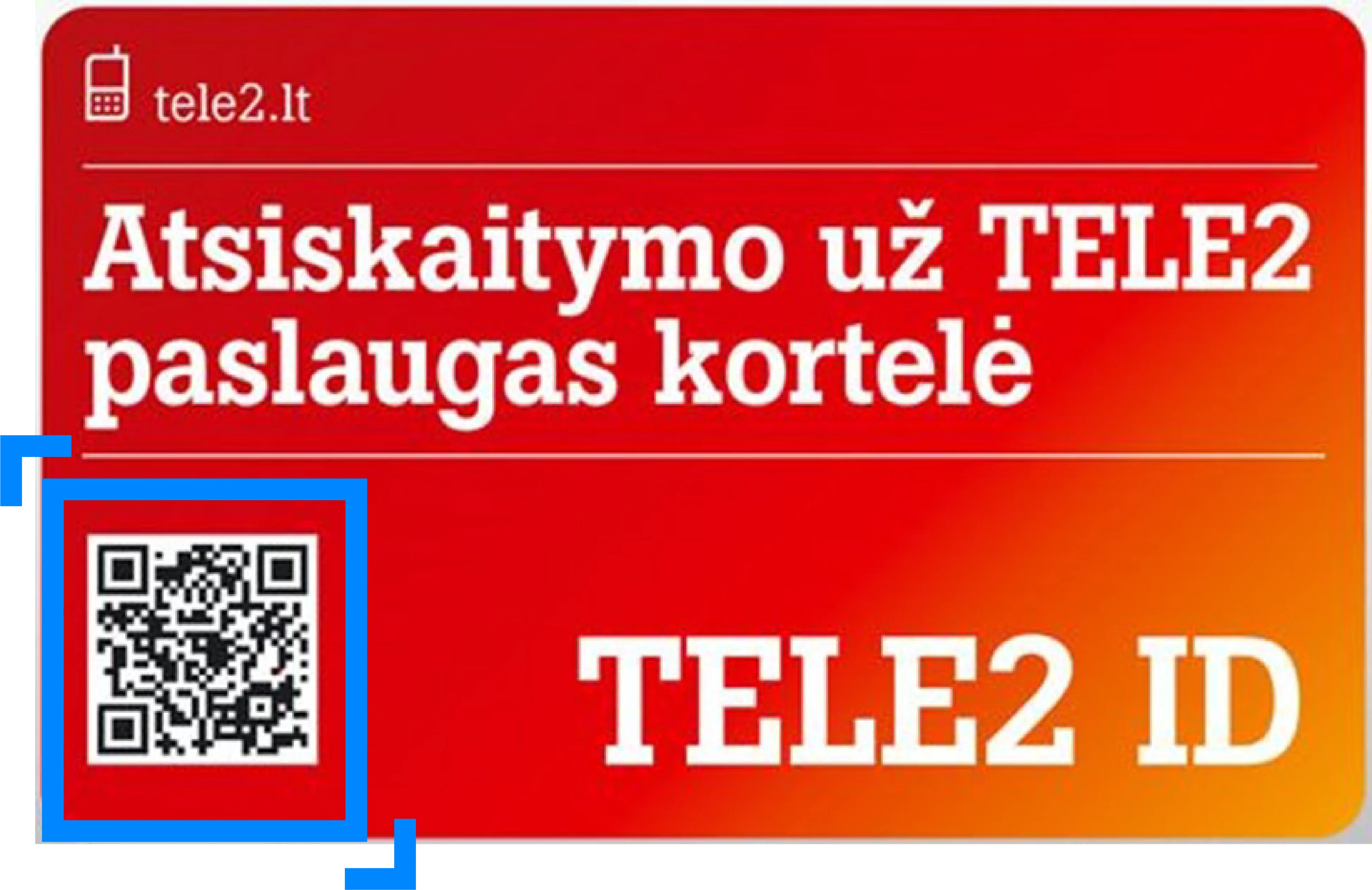 TELE2 ID kortele sąskaitą už TELE2 paslaugas gali apmokėti privatūs mėnesinio apmokėjimo paslaugos vartotojai.