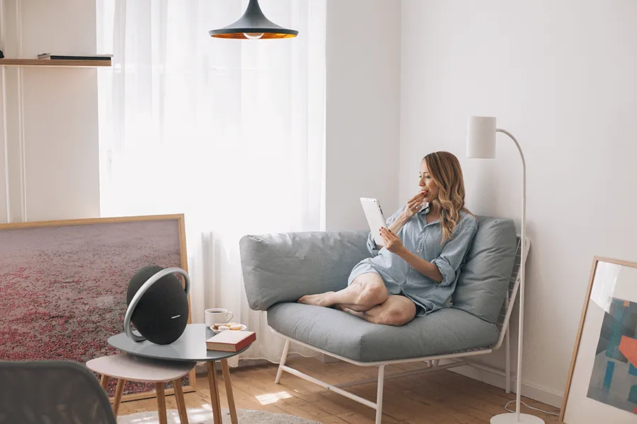 Kai perkeliate kolonėlę iš vieno kambario į kitą ir įjungiate, Onyx Studio 8 automatiškai kalibruojasi, kad optimizuotų garso kokybę. Naudodami „Bluetooth“ galite suporuoti du garsiakalbius, kad galėtumėte mėgautis platesniu ir detalesniu garsu. Iki 8 valandų veikianti kolonėlė bus patogiu įrankiu konferenciniams pokalbiams ir garsiems vakarėliams.