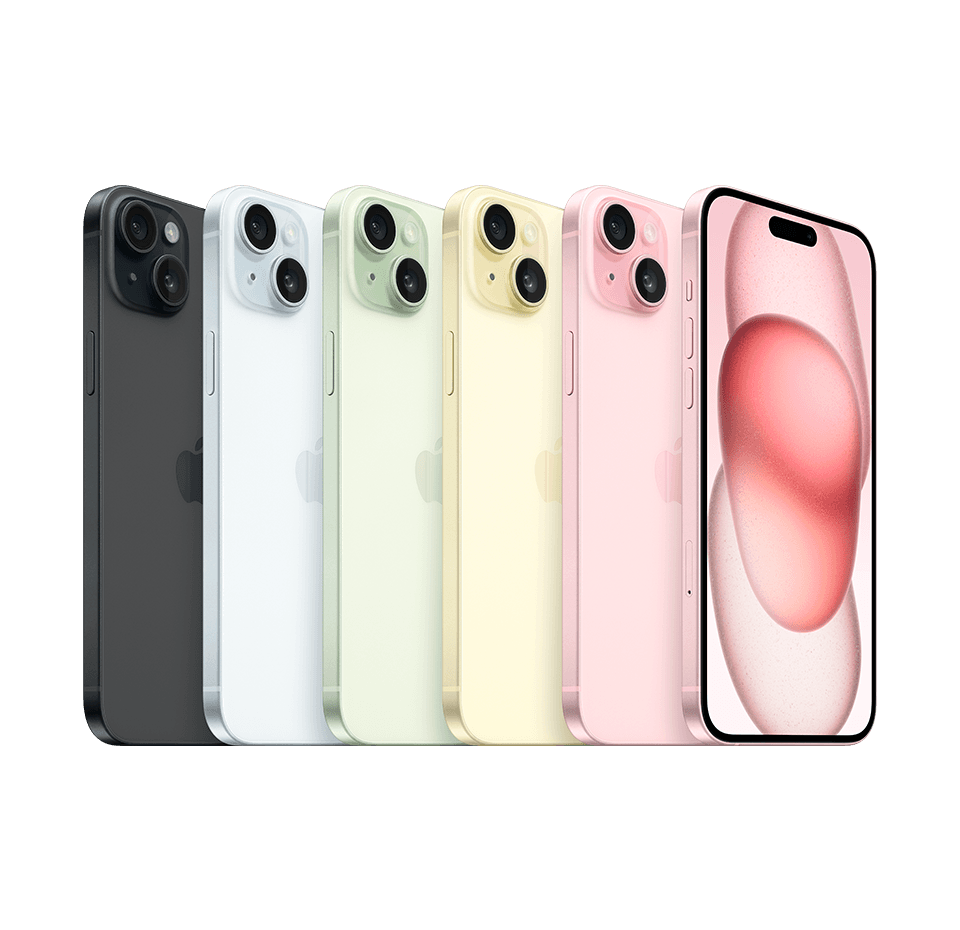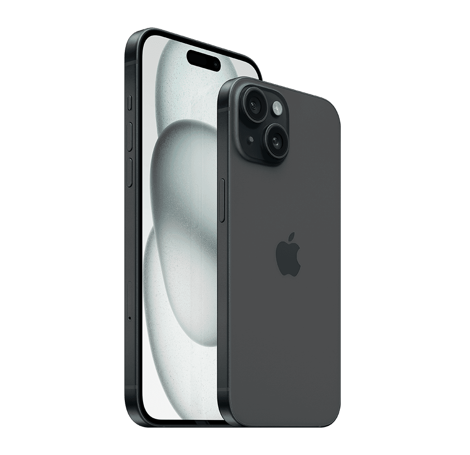 Ekrano kampai užapvalinti. Matuojant kaip stačiakampį, ekrano įstrižainė yra 6,12 colio („iPhone 15 Pro“, „iPhone 15“) arba 6,69 colio („iPhone 15 Pro Max“, „iPhone 15 Plus“). Faktinė peržiūros sritis yra mažesnė.