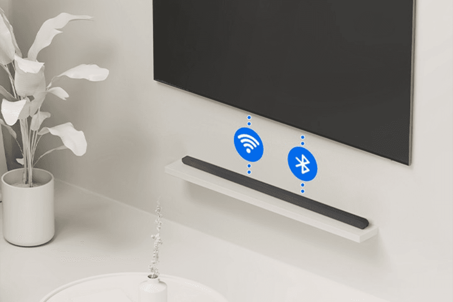 Samsung Sounbar HW-S800D 3.1.2 – gali būti montuojamas ant sienos, todėl įsilieja į interjerą ir puikiai tinka prie pakabinamų televizorių. Garsiakalbyje esantys 3 pagrindiniai kanalai, 1 žemų dažnių garsiakalbio kanalas ir 2 aukštyn kylantys kanalai sukuria erdvinį garsą, kad galėtumėte mėgautis įspūdingomis pramogomis. Aktyvusis balso stiprintuvas atkuria balsus ir pritaiko juos prie kintančio triukšmo lygio, todėl nesvarbu, kokį turinį žiūrėsite, nepraleisite nė žodžio.