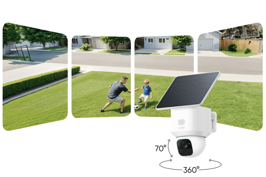 Eufy SoloCam E30 - pažangi saulės energija maitinama išorinė saugumo kamera. Ji naudoja dirbtinio intelekto technologiją, skirtą žmonių ir transporto priemonių aptikimui bei automatiniam judesio sekimui, taip pat gali reaguoti į tokius garsinius signalus, kaip vaiko verkimas. Jos 360° horizontalaus sukimosi ir 70° vertikalaus pasikreipimo kampai užtikrina platų aplinkos stebėjimą be aklųjų zonų, o 2K raiška - kokybiškai įrašomą vaizdą esant tamsiam ir šviesiam paros metui. Saulės energijos įkraunama 10 000 mAh baterija ir nuimamas skydelis su „SolarPlus™“ technologija garantuoja nepertraukiamą vaizdo stebėjimą, esant vos porai valandų saulės šviesos per dieną.