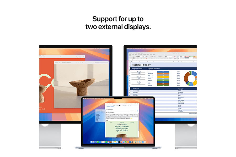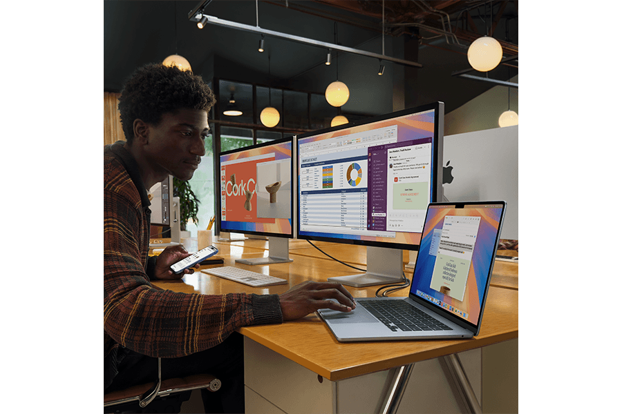 15 colių Liquid Retina ekranas leidžia patogiai dirbti ar naršyti ir vienu metu matyti daugiau informacijos. Ryškios, natūralios spalvos užtikrina tikslų vaizdų atkūrimą – nuo nuotraukų redagavimo iki tekstinių duomenų analizės. Plonas aliuminio korpusas – lengvas ir patvarus, todėl kompiuterį patogu nešiotis ir naudoti visur. Didesnis „Force Touch“ lietimui jautrus valdiklis suteikia daugiau erdvės naudojimui, o pažangios dirbtinio intelekto funkcijos spartina vaizdų apdorojimą, teksto generavimą ir kitų kasdienių užduočių atlikimą.