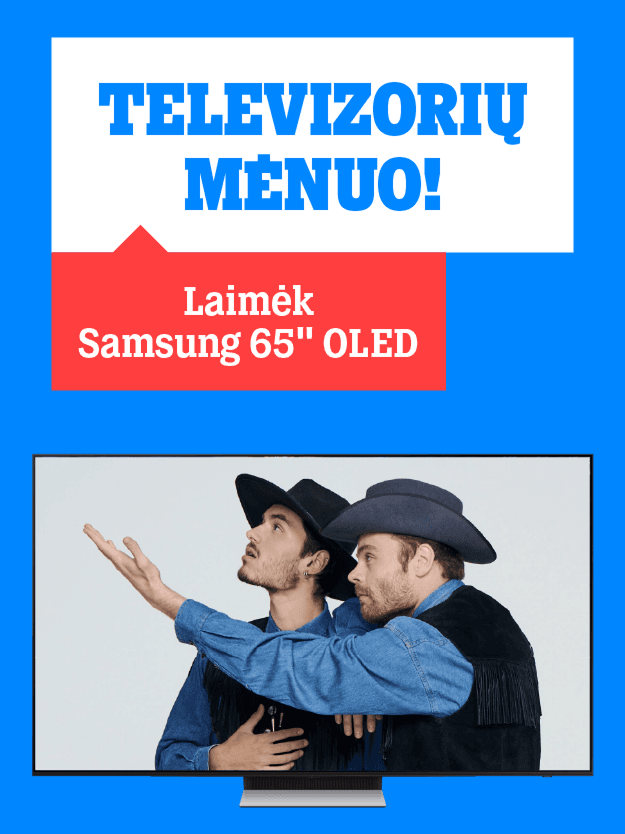 Pirkdami Samsung 55″ ar didesnės įstrižainės televizorių išsimokėtinai TELE2 salone arba internetu, galite dalyvauti žaidime ir laimėti Samsung QE65S90FATXXH 65 OLED 4K 2025 televizorių.