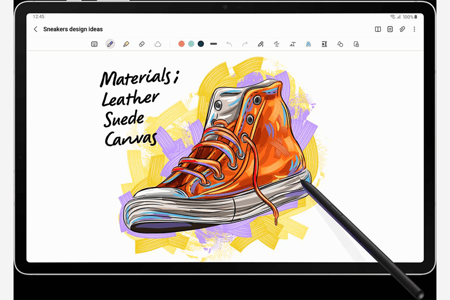 Samsung Galaxy Tab S8 planšetiniame kompiuteryje rasite „S Pen“ rašiklį, kuris prikimba prie įrenginio nugarėlės magnetu, kad būtų įkrautas. Patogiai rašykite, braižykite ar pieškite – įamžinkite visas genialias savo idėjas naudodami itin mažo užlaikymo „S Pen“ rašiklį . Tai tūkstantis įrankių viename – naujasis „S Pen“ suteikia įspūdingą valdymo lygį.