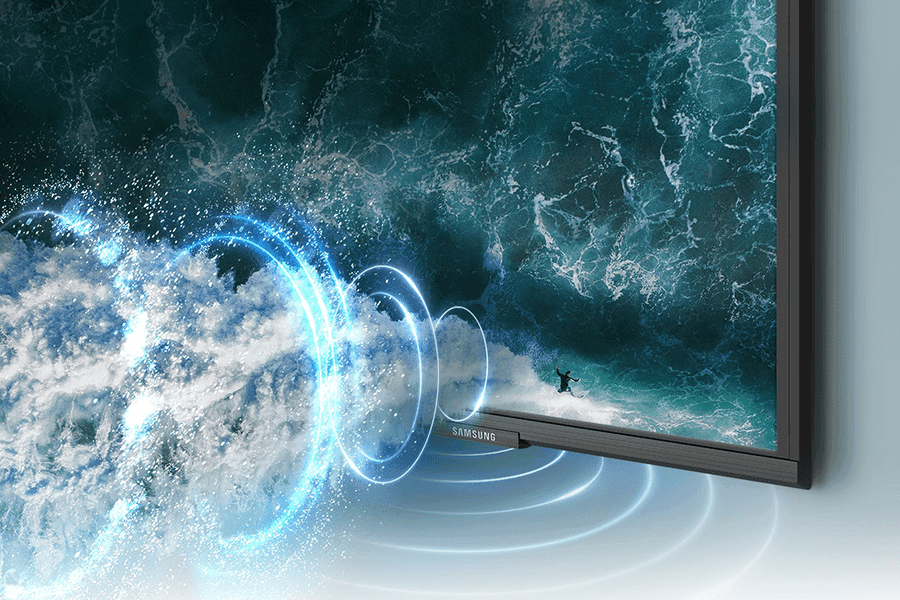 Garsas yra suderinamas pagal jūsų žiūrimą turinį. Prisitaikantis garsas turi vaizdinį garso intelektą, kuris optimizuoja garsą pagal realaus laiko scenos analizę ir turinio tipą. Nusprendę namuose sukurti tikrą namų kiną, galite būti tikri, kad garsas skambės kokybiškai ir maloniai. „Q-Symphony“ unikaliai leidžia vienu metu veikti TV garsui ir kolonėlėms*, kad būtų užtikrintas geresnis erdvinis efektas, netildant televizoriaus.