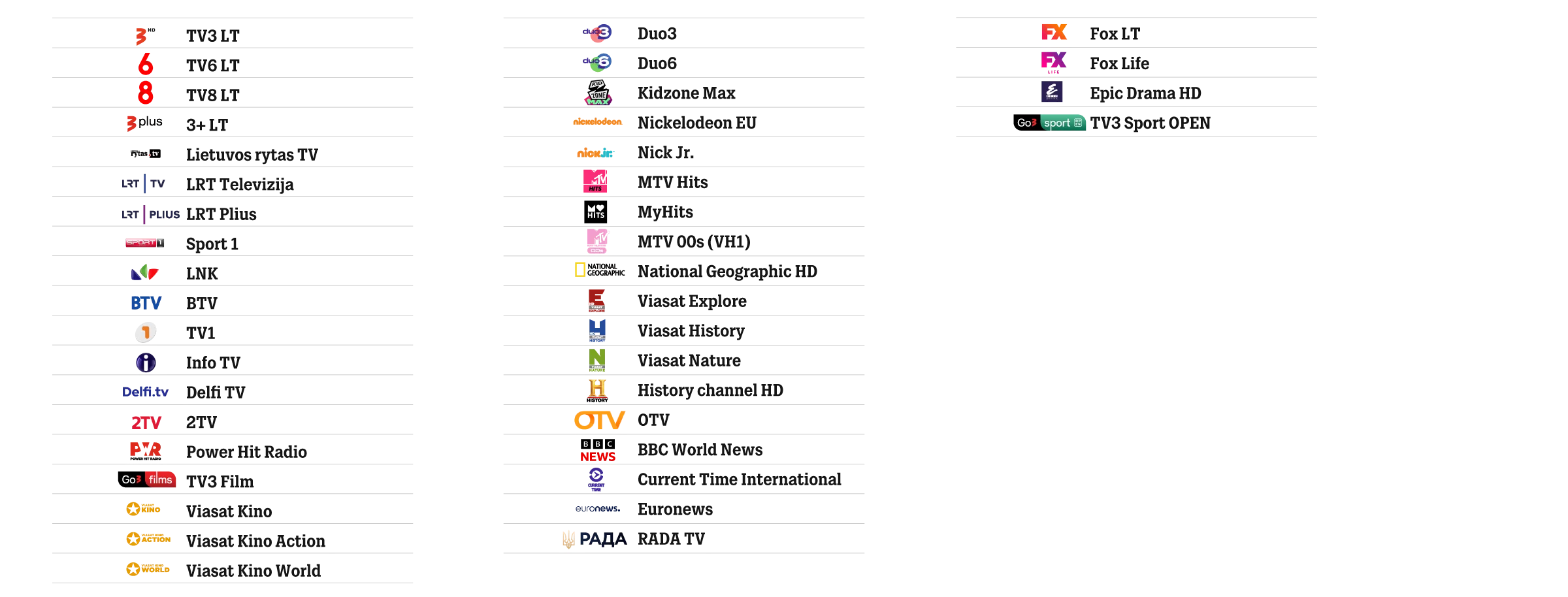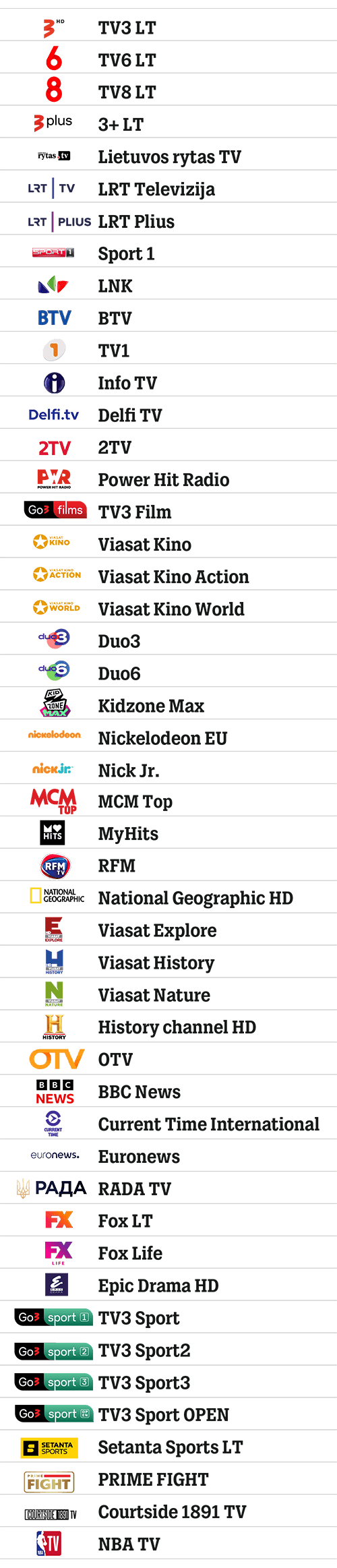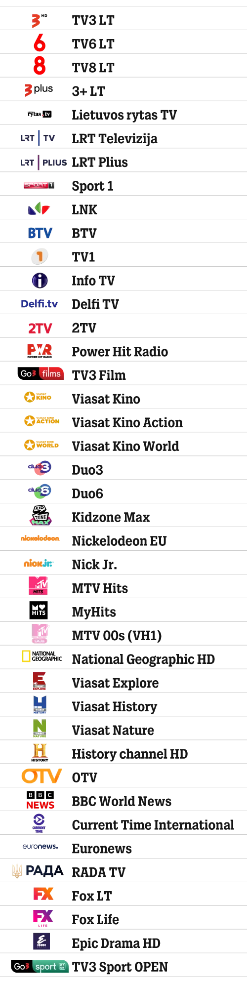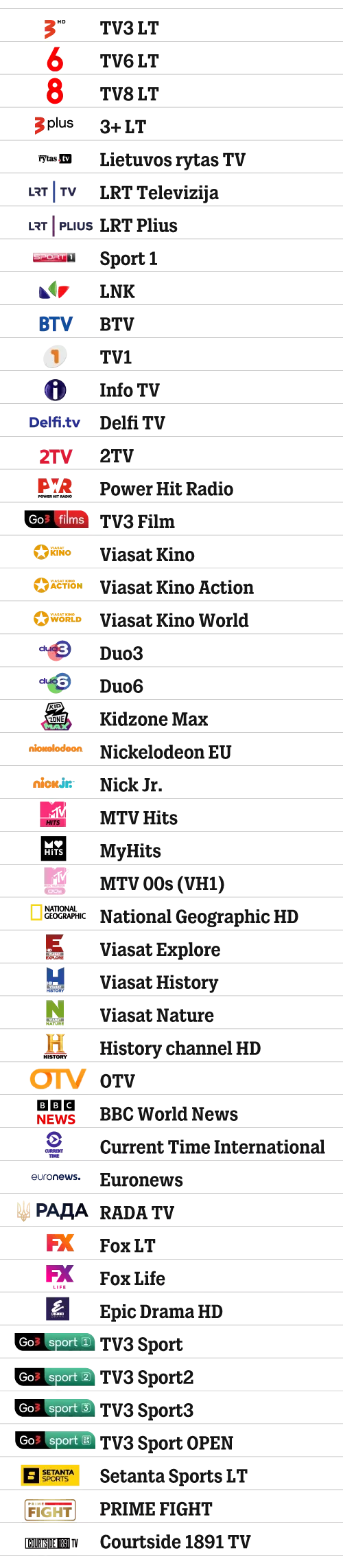 „Go3“ televizijos nemokamo laikotarpio pasiūlymas nurodytiems paketams (paslaugoms be priedėlio) galioja TELE2 paslaugomis besinaudojantiems klientams, pirmą kartą užsisakiusiems „Go3“ paslaugą ir tik vienam numeriui ir vienos įmonės. Pasibaigus nemokamam laikotarpiui, paslaugų paketai kainuos atitinkamai svetainėje nurodytomis kainomis. Paketo bet kada galite atsisakyti TELE2 savitarnos svetainėje arba paskambinę telefonu 117.