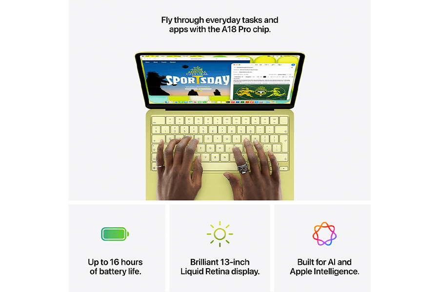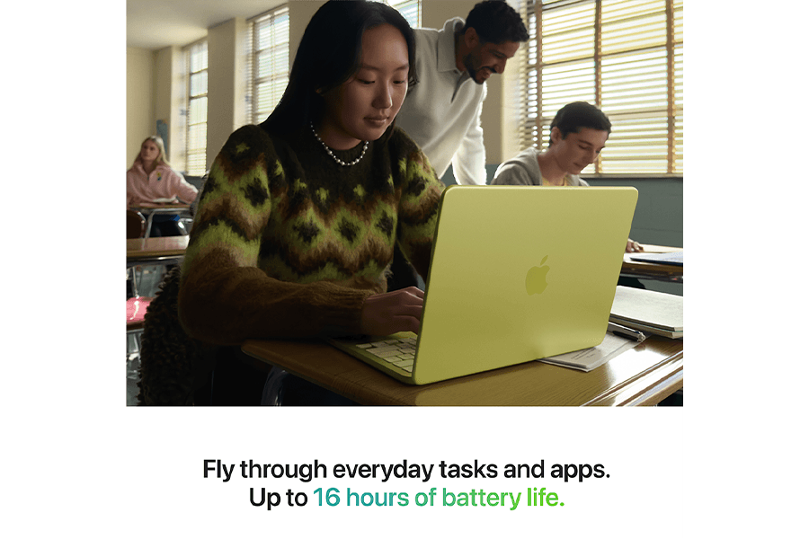 Naujajame modelyje su tvirtu aliuminio korpusu įdiegta patogi klaviatūra, 1080 p FaceTime kamera, kokybiški garsiakalbiai ir mikrofonai, tad pašnekovai jus matys ir girdės nepriekaištingai. Kompiuteryje veikia Apple Intelligence, palengvinsiantis kasdienius darbus.