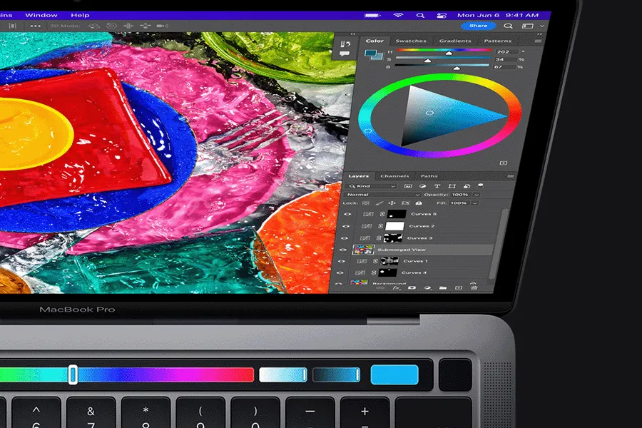 Su nuostabiu Retina ekranu vaizdai kompiuteryje įgauna neįtikėtino detalumo ir tikroviškumo. Ryškus LED foninis apšvietimas suteikia sodrią juodą ir ryškią baltą spalvą. „MacBook Pro“ turi „True Tone“ technologiją, todėl baltos spalvos balansas automatiškai prisitaiko prie jus supančios šviesos spalvų temperatūros – kad žiūrėjimas būtų natūralesnis.