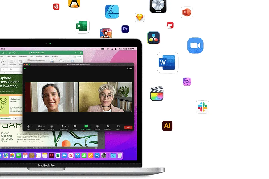 Dėl M2 lusto, MacBook Pro yra galingesnis nei bet kada anksčiau. FaceTime HD kamera išnaudoja visus naujausio vaizdo signalo procesoriaus privalumus, todėl puikiai atrodysite net ir vaizdo skambučiuose. Tačiau tai dar ne viskas – kompaktiškas dizainas palaiko iki 20 valandų baterijos veikimo laiką ir aktyvią aušinimo sistemą, tad jūsų kompiuteris tarnaus dar ilgiau!