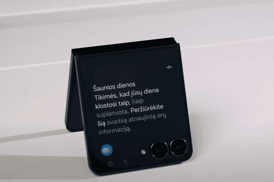 SAMSUNG Galaxy Flip7 – lig šiol galingiausias ir pažangiausias Galaxy Flip telefonas, puikiai tilpsiantis į bet kurią kišenę. Tai išskirtinis modelis su dviem patogiais ekranais. Atlenktas atrodo visai kaip įprastas išmanusis, o sulenkus tampa itin kompaktiškas. Viršelio ekranas dabar dar didesnis, o kraštinės – dar plonesnės. O tvirtas aliuminis rėmelis leis jaustis ramiai.